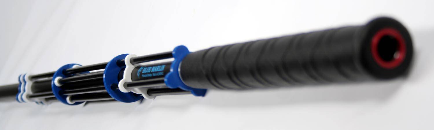 Konstrukce foukačky BLUE MARLIN má unikátní design. Hliníkové tělo je pro dosažení perfektní stability ve všech směrech vyztuženo sklolaminátovými pruty, které absorbují vibrace po výstřelu. Přidaná váha má další význam pro stabilitu při míření. Tento model má posuvné madlo, které lze ustavit jednoduchým posunutím. Délka foukačky 4ft (122cm) nebo 4ft(152cm). Kalibr 0.625 (16,00mm) Součástí je i ochranný obal na foukačku. | |