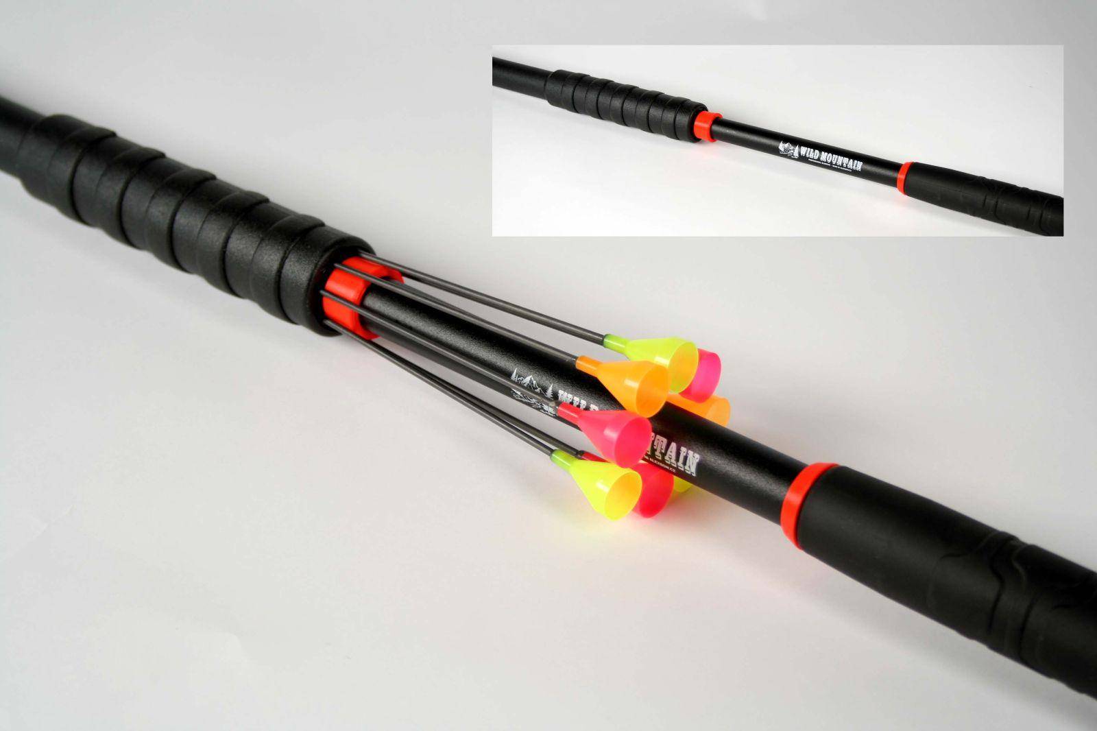 Model Wild Mountain má ve své konstrukci hliníkové trubky větší vnitřní průměr. Tento průměr byl zakázkově vyroben pro použití našich Cone Nr. 2 které mají zcela jiný tvarový profil než Cone Nr. 1 a Nr. 3. Cone Nr. 2 byl speciálně  vyroben pro průměry trubek foukaček od firmy Cold Steel. Tyto trubky mají jinou toleranci vnitřního průměru než používané evropské hliníkové trubky. Cone Nr. 2 a jeho  tzv. zadní límec dle našeho hodnocení udržuje šipku lépe v průměru trubky při jejim pohybu.  Wild Mountain se vyrábí v délce 152 cm a vyrábí se ve dvou provedeních. Wild Mountain ( standartní gumové madlo), Wild Mountain Quiver ( vybaven toulcem pro uložení 8 šipek) . Upozornění použití šipek pouze s Cone Nr. 2 které mají vyhovující toleranci
