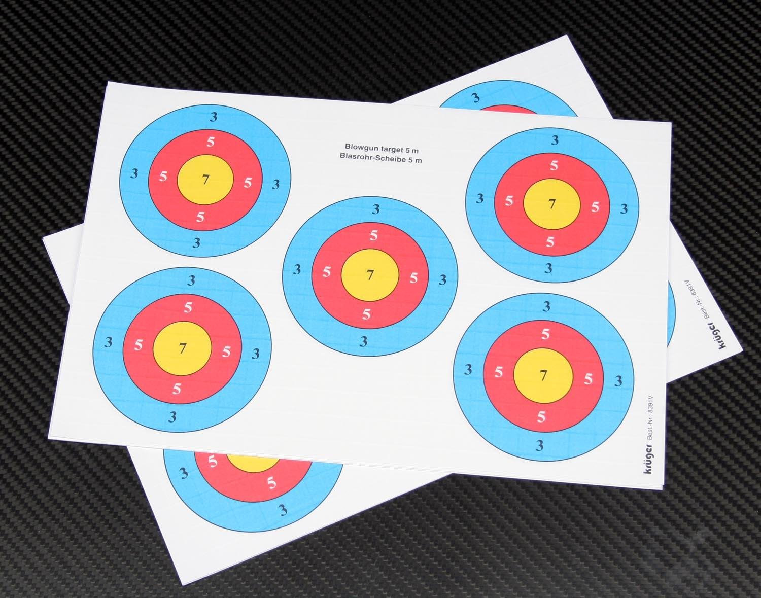 Velikost terčíku 9 cm - 3,6,9 cm bodování 7,5,3 Speciální papír s nylonovými vlákny. Format A4. Počet kusů 10 | |