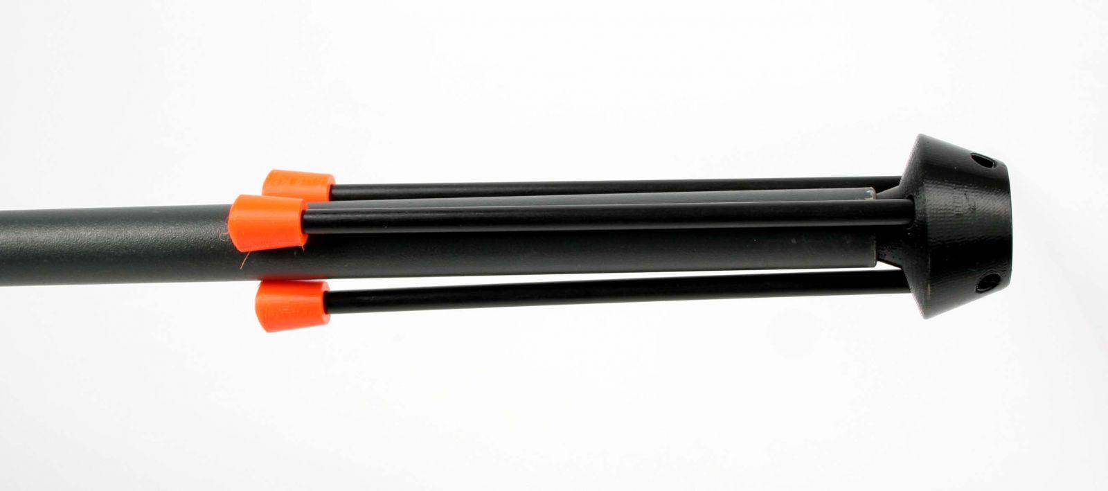 Jednoduchý skládací stojan pro vaši foukačku. Základna má průměr 34 cm, výška 25 cm. Nosné části tvoří sklolaminátové tyče v průměru 6 mm. Tento stojan je určen jak pro průměr trubky 16, 15, 14 mm. Součásti jsou jednotlivé adaptery.