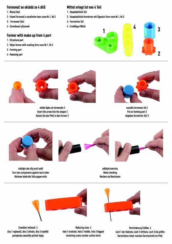 Tento přípravek je určen pro dosažení lepší vzájemné velikostní tolerance mezi vnitřním průměrem trubky foukačky a velikosti průměru plastového konusu.  Pokud je velikost použitého cone těsnější na velikost průměru trubky jsou i výsledky seskupení šipek těsnější.  Tato společná tolerance nelze docílit při samotné výrobě komponentů. Vždy budou z výroby rozdíly. Rozdíly jsou zejména ve velikosti vnitřního průměru použité trubky. Tyto trubky mají z výroby různé tolerance. Toto může mít vliv na dosažení přesnosti seskupení šipek zejména na delší vzdálenosti. Použitím formovače průměru lze dosáhnout lepší těsnosti použitých kloboučků šipek.