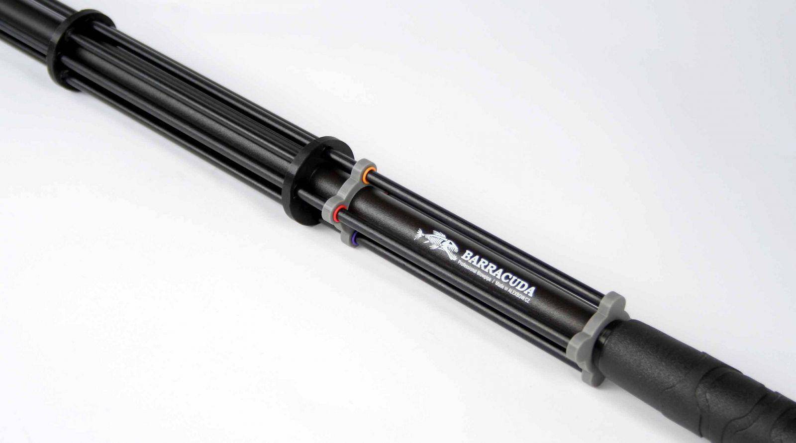 Construction blowpipe Barracuda has unique desing. Stabilizer, adjustable handle and tuning system it's highest standards. Aluminum body is for attainment perfect stabilization in of all directions reinforced glass-fiber reinforced sticks which absorb vibration after shot. Added weight has next bearing on stability at sight. This model has adjustable handle which it is possible set up simple dislocation. Barracuda and her next model have simple tuning system which makes it possible to shoot find select point for different distance. Be enough index in hands after coloured circle select accurate position and by trying to dial its blowpipe.